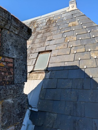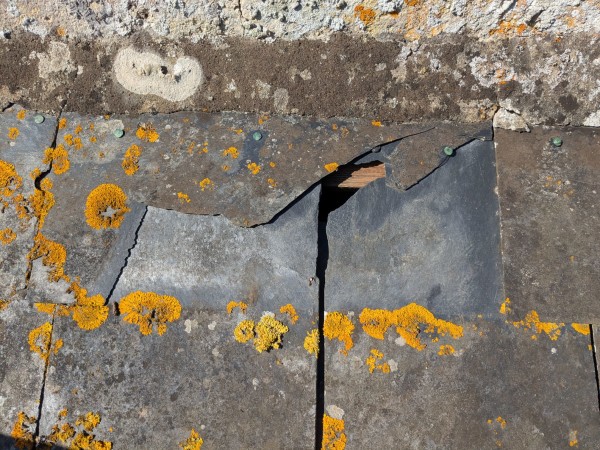 Entretien ardoises : recherche d'ardoises cassées, remplacement par des ardoises à fixer au crochet pointe